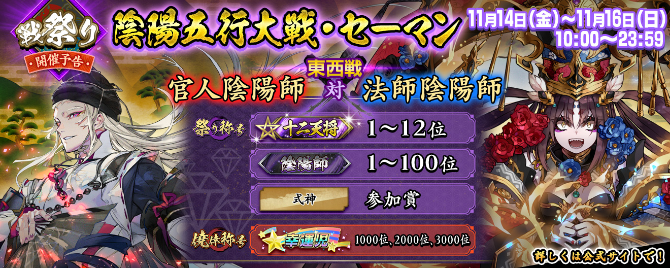 戦祭り陰陽五行大戦の詳細が発表されましたね✨