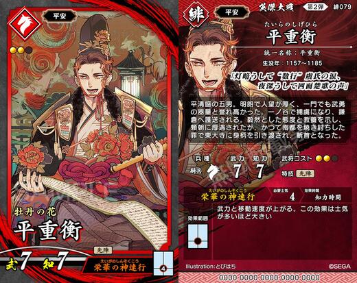 自分でも何となくの使い分けに留まっていた緋の平安2コスト騎馬、平忠常と平重衡の2枚ですが、ここをちゃんと比較してデッキに入れていくことが大掾維茂道の一助になるだろう、ということで、ここで改めて言語化、比較していこうと思います。