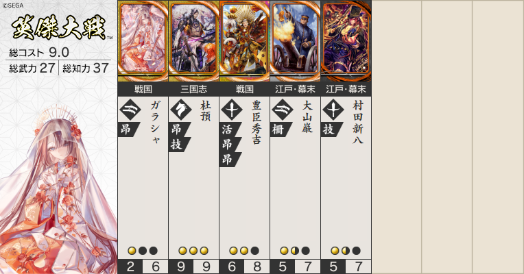 次、五代このデッキだと杜預にかかりますが、中々敵を倒せなかったりして剣1本のままの事が何回かあった