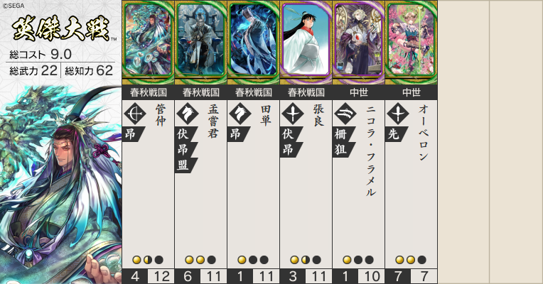 このデッキだと仰る通りオーベロンがメインですね。サブも火牛と二コラなので、孟嘗君はスペック枠です。