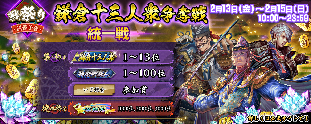 戦祭り鎌倉十三人衆の詳細が発表されていましたね✨