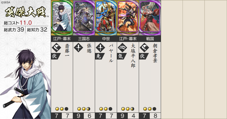・鹿島新當流デッキ:卜伝with弟子たち(今川氏真含む)